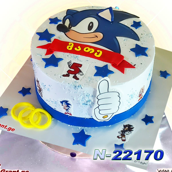 სონიკის საბავშვო მარცეპანის "2D" ტორტი, ზედაპირზე + ჟელე გადასხმული